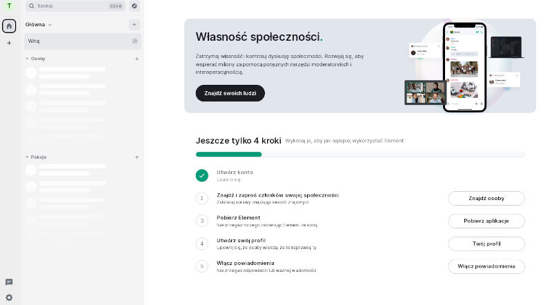Ze swojej strony polecam Element, gdyż mimo że jest stosunkowo ciężki, ze względu na fakt, że to aplikacja napisana w Electronie, jest najbardziej kompletnym klientem. Oferuje wersje na komputery, przeglądarkową oraz na smartfony.